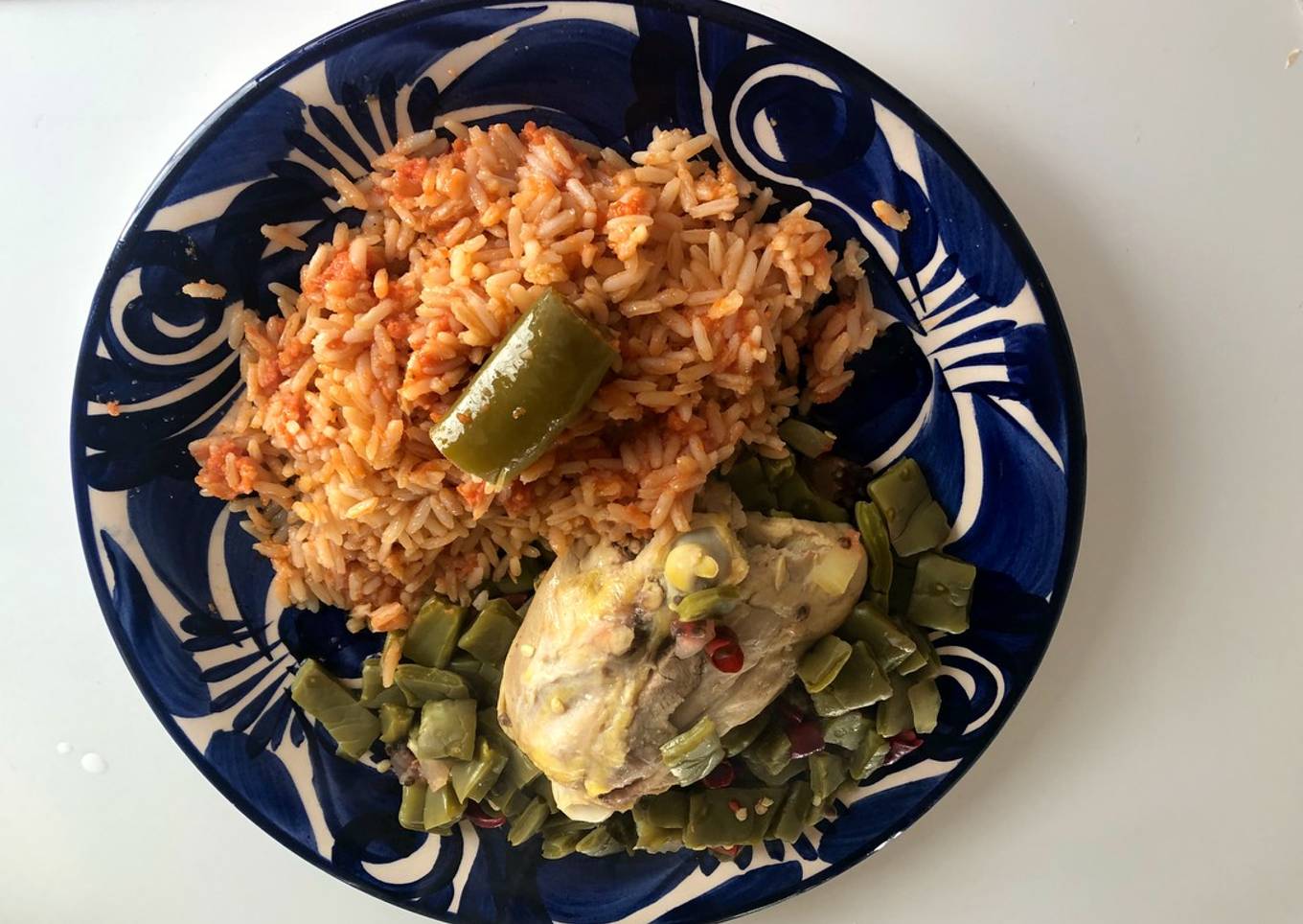 - Retiras el pollo del aluminio y lo sirves; yo recomiendo acompañarlo con arroz rojo, aunque también pueden ser frijoles negros.
