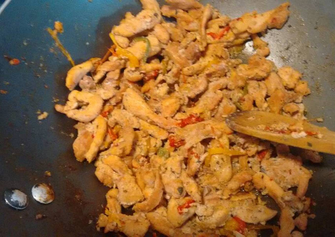 - 2 pechugas de pollo sin piel y cortada en dados o tiras