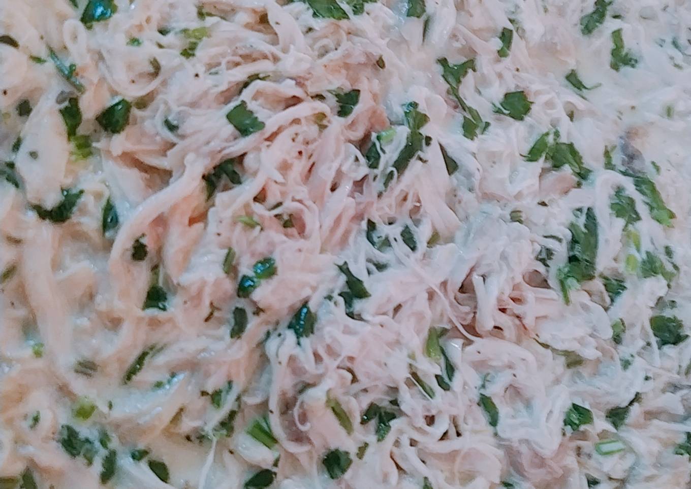 - Se pone a cocer el pollo, una vez cocido deshebrar.