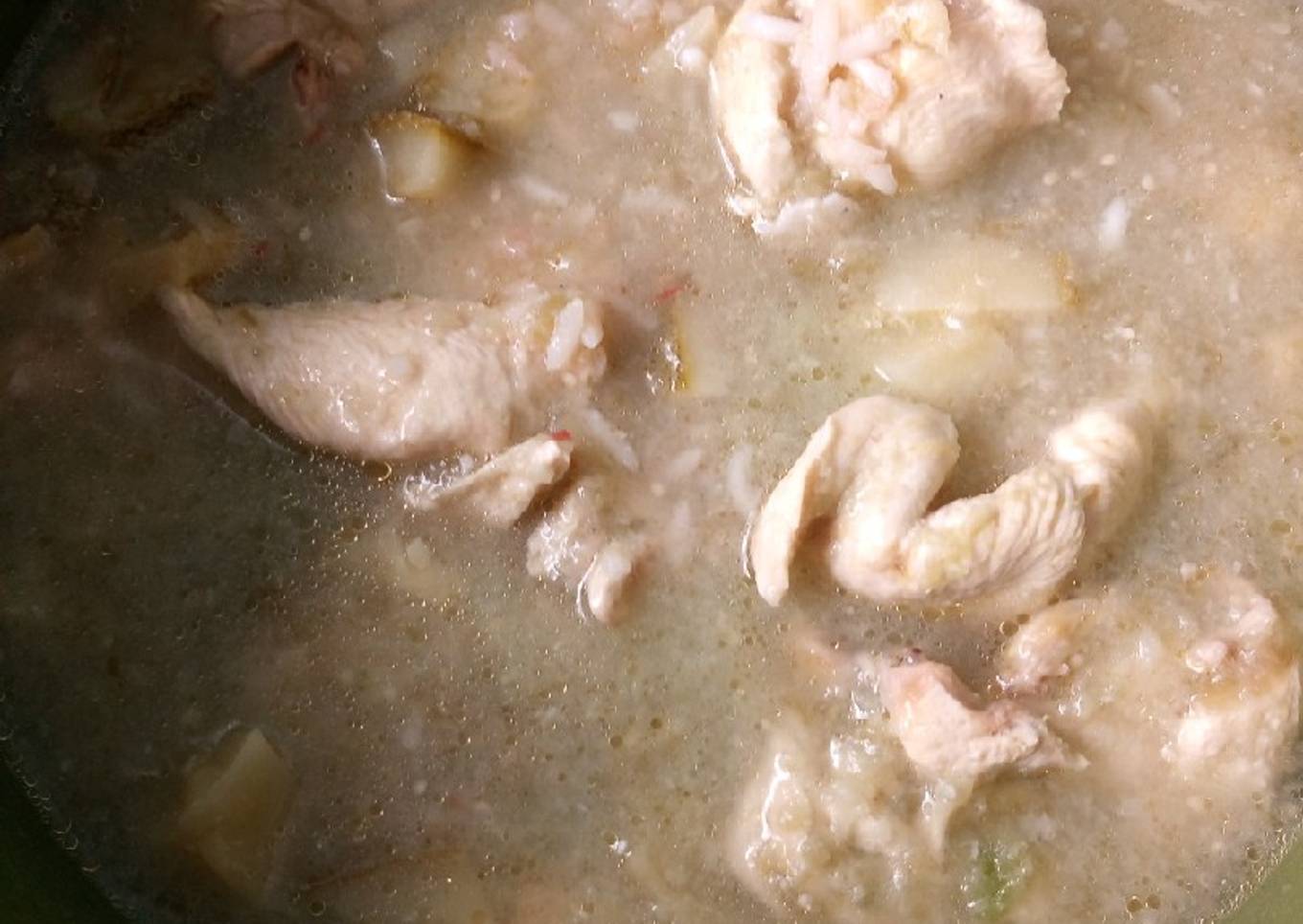 - Deja hervir a fuego medio, de preferencia tapa para que se cueza mejor el pollo.