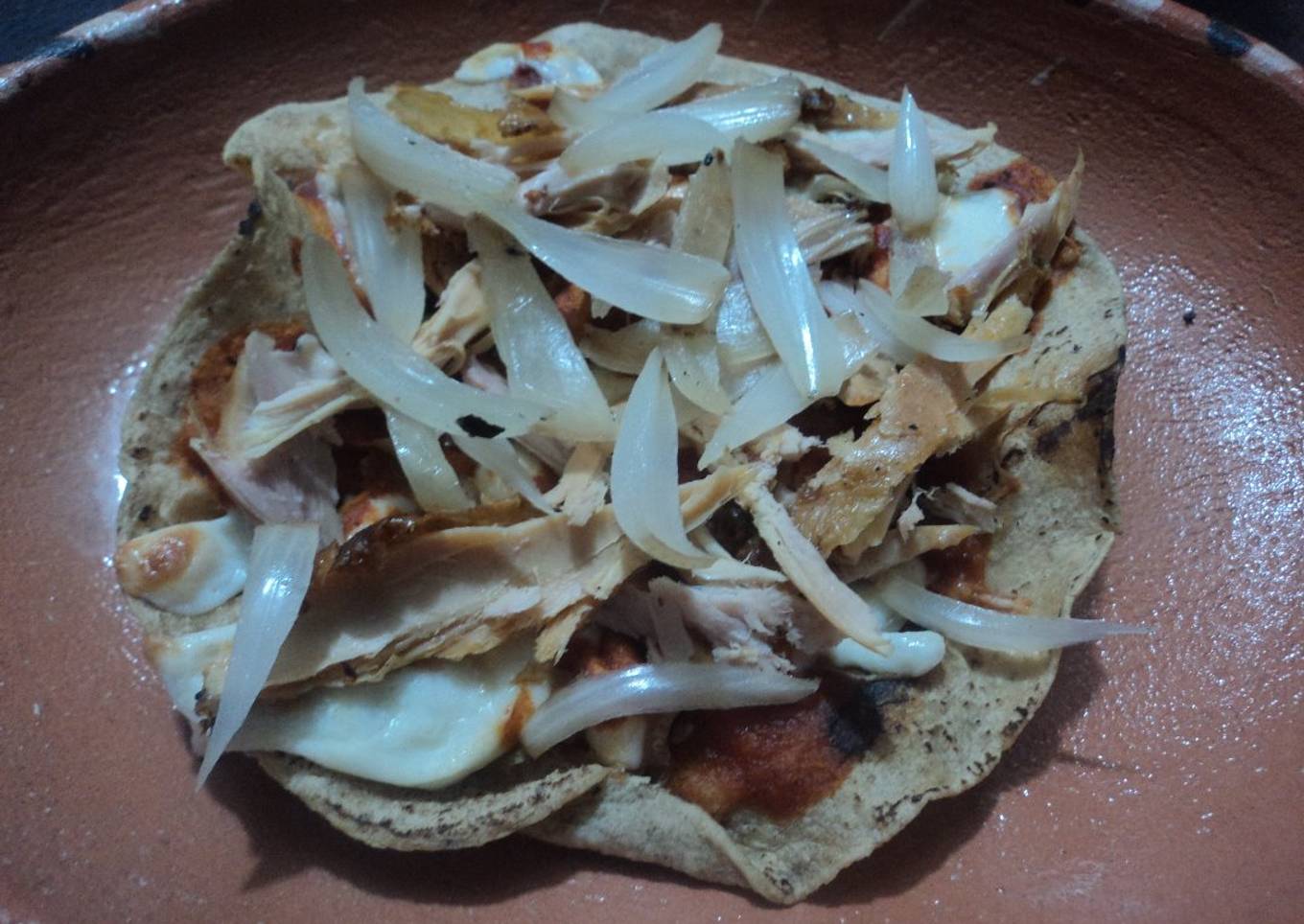 Tostada asada de pollo con cebolla asada al tequila el geras